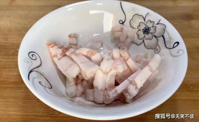 4、接着准备2块钱肥肉,切块备用。