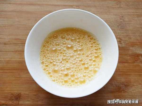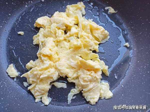7、锅内烧油,等待油温7成热,倒入鸡蛋液,炒成型后,倒出备用。