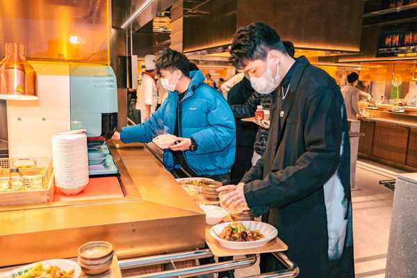 再比如,改变现炒快餐常见的流水线取餐模式,在门店内设置了九个独立的操作档口,炒菜、蒸菜、炖汤、水果沙拉、寿司等分门别类,顾客分档口选餐,解决排队长、交易效率慢等问题。