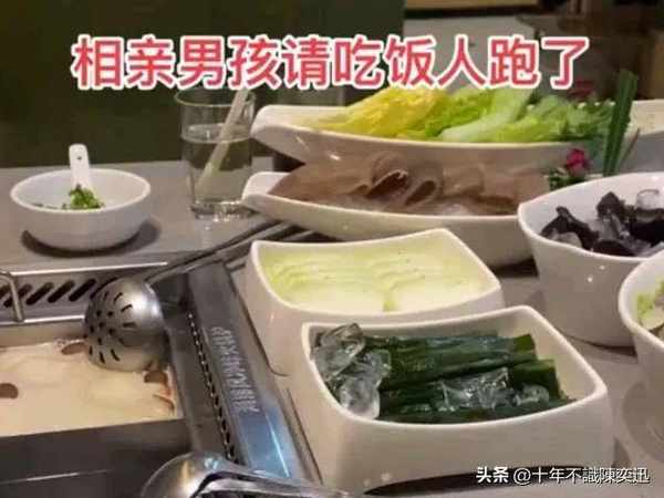 近日,在河南郑州,一名女孩称自己和一个男孩约会相亲,两个人把吃饭的地点选择了火锅店。落座以后这名女孩一共点了500块钱的菜,桌子上摆满了各种各样的肉类。男孩当时并没有说什么,等到菜端上来以后却说自己要去上一个厕所。然后女孩就一直坐在饭桌上等男生回来,桌子上的菜一口都还没有动,结果等了一个小时也没见男孩的踪影。
