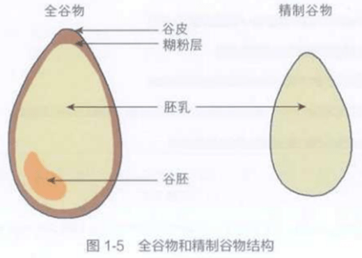 谷皮中含有丰富的膳食纤维、B族维生素、矿物质和植物化学物;糊粉层含有蛋白质、脂肪,丰富的B族维生素及矿物质;胚乳含有淀粉和少量蛋白质;胚芽的营养较为丰富,含有蛋白质、脂肪、多不饱和脂肪酸、维生素E、B族维生素和矿物质等。[1]