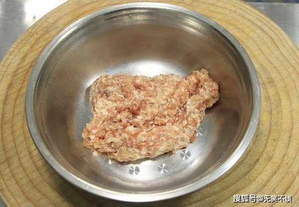 1.准备五花肉一块,先切成肉片再剁成碎末,不要剁得太碎,把剁好的肉馅放入盆中。