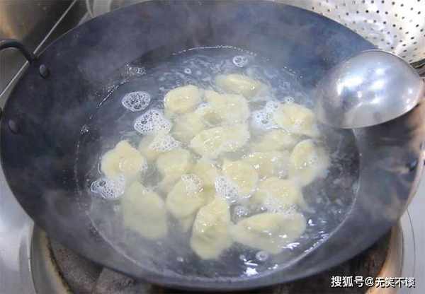 7.煮饺子的时候开水下锅,经常用勺子推推,千万不要来回搅防止饺子破皮,素馅饺子比肉馅饺子容易熟,不用点水饺子全部飘起来即可出锅。
