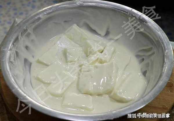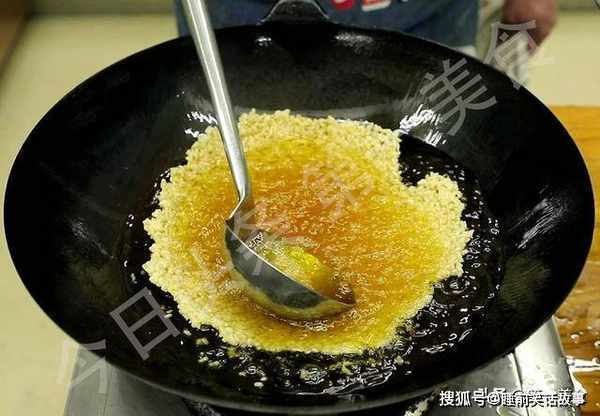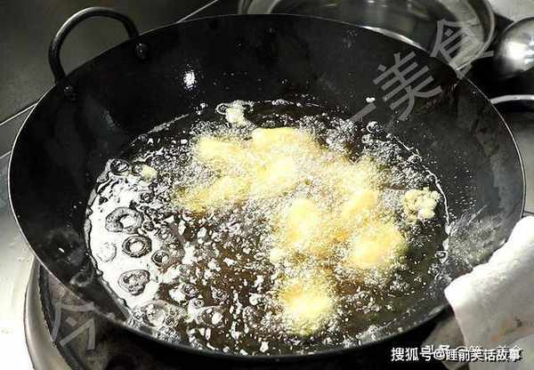 升高油温至6成热时转为小火,把鲜奶倒入锅中,快速复炸20秒钟倒出控油,经过复炸的鲜奶色泽金黄、口感焦酥,控干油摆放在盘中,一道外酥里软的炸酸奶就做好了。