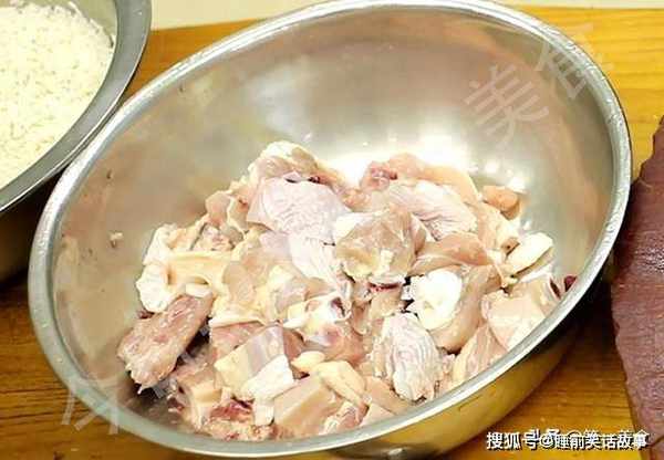 准备鸡腿一个,切成均匀的小块,清洗干净放入盆中备用。