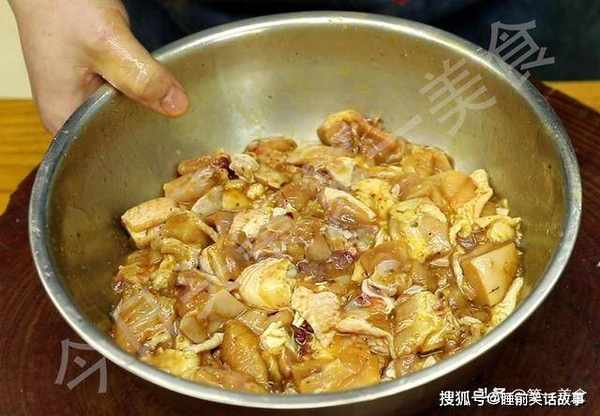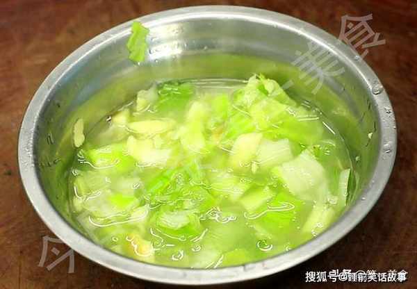 切点葱片、姜片放在一起,加入适量的清水,使劲抓揉成葱姜水,把里面的葱、姜沥出来,只用葱姜水。