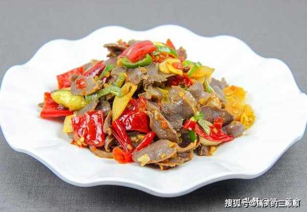 翻炒几下就可以出锅装盘,这道酸辣开胃的泡椒鸡胗就做好了,自己做经济实惠,几块钱的鸡胗就能炒一大盘,好吃下饭快。