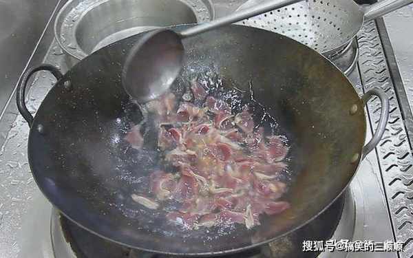 放入剁椒,快速翻炒出酸辣味以后,加入焯过水的鸡胗,快速翻炒几下。