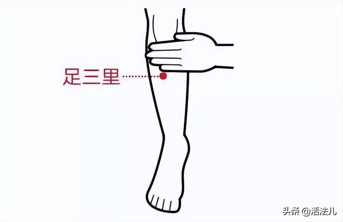 取穴:在外膝眼下三寸(直下四横指),按压有酸胀感的位置。