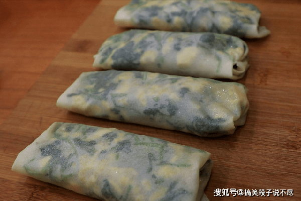 现成的春卷皮,两种叠在一起做皮,然后放入适量的馅料,卷成菠菜盒子的形状就可以了。
