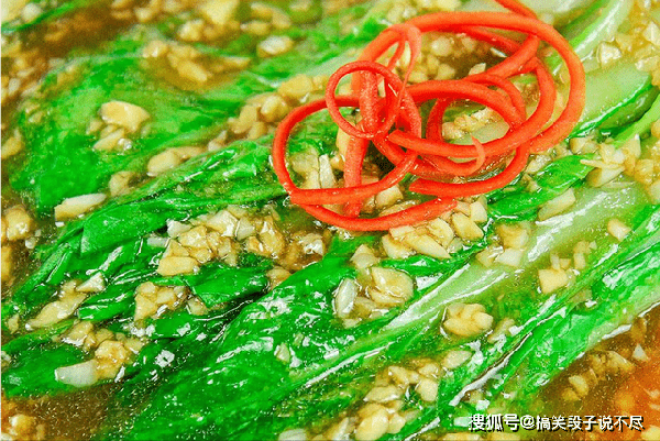 料汁熬至粘稠起大泡以后淋入一点明油提亮色泽,然后起锅浇在生菜上面,放上红椒丝点点缀一下、美味即成。