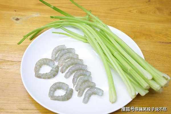西芹一小把清洗干净、切成段;虾仁去除虾线洗干净,加入少许食盐、鸡粉、料酒去腥抓拌均匀,再淋入一点水淀粉增加嫩滑的口感,拌匀后放在一边腌制5分钟。