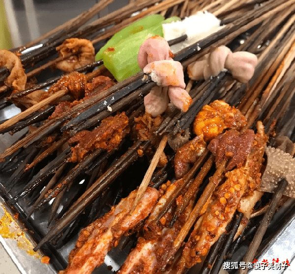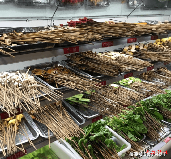 串串都自己拿,想吃什么取什么,青菜类比较便宜,有毛肚和脑花比较贵,菜品种类超级多,小郡肝是店里的招牌菜,旁边的食客边拿边说:“不要想吃完在来拿,这么想就错了,等你再来的时候,就没了、没了、没了”。