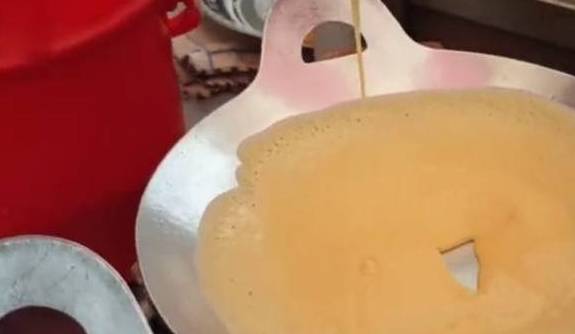 然后把铝锅烧热,在里面放上少量的食用油,然后一个锅里倒上一勺搅拌均匀的面糊,然后摊成一个薄饼,看着很诱人,然后盖上盖子稍微过一会这薄饼就做好了,做好的薄饼很香,金黄一下就接下来了,这样的一张饼老板卖一元一张,而且来买的食客都是大量的买,而且这小吃做起来不麻烦也不费事,所以女子一天能收入2000多块,这让她的闺蜜老羡慕了,都想辞职跟她一起干了!
