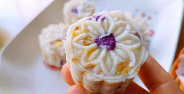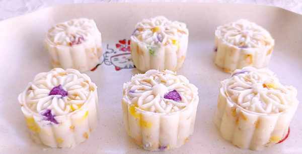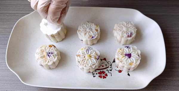 6,放入模具中,轻轻地按压出花型。