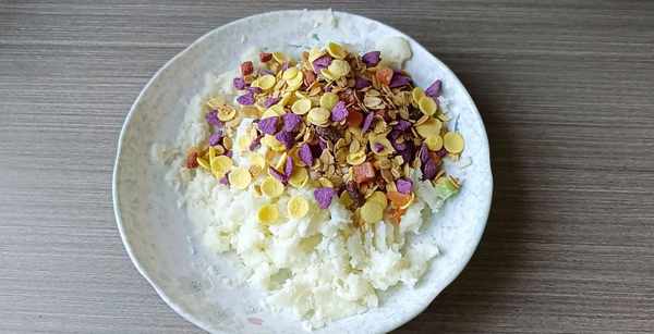 今天用山药和水果燕麦做道小点心,简单好吃还营养。