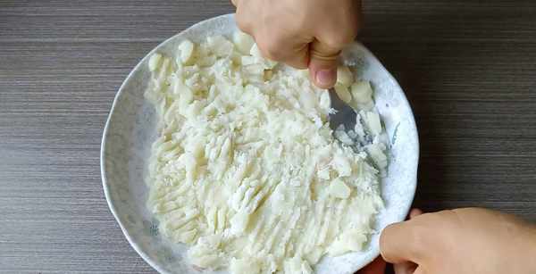 3,捣成泥,喜欢吃甜的朋友,可以趁热加点白糖。
