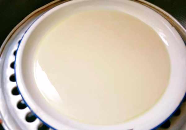 8,起锅烧水,水开后,放入蒸笼,把装有面糊的盘中放在蒸笼上。