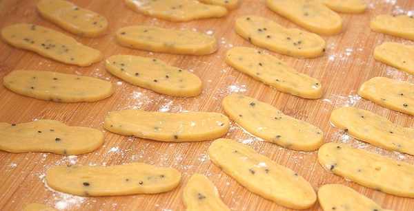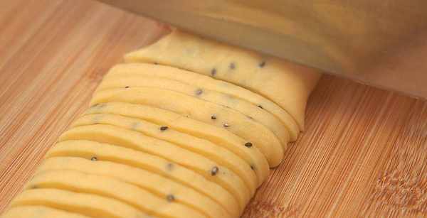 6.接着用刀切成0.5厘米左右的厚片。