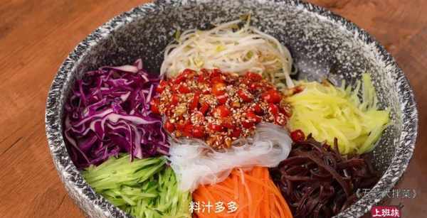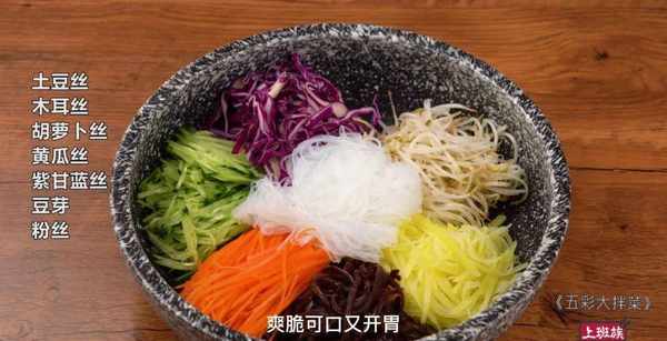 大拌菜尽量选口感脆爽的,红的白的紫的绿的搞个五彩斑斓~