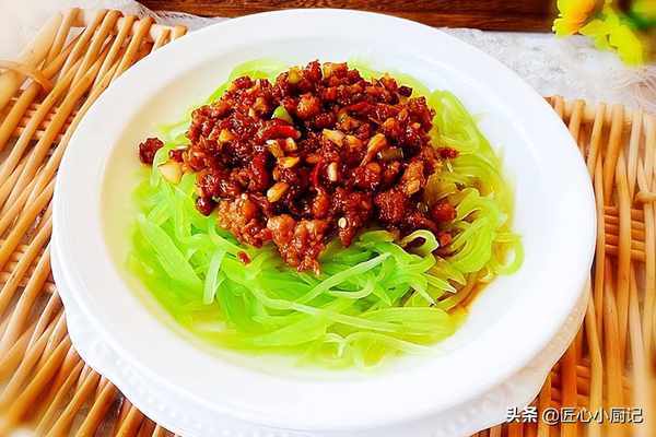 锅中热油放入蒜沫炒出蒜香味后,加入肉沫,食盐,鸡精,蚝油,生抽,大火翻炒出香味后,然后把肉沫盖浇到莴笋丝上即可。清脆爽口的莴笋丝裹着浓浓的肉沫香,好吃解馋又不腻。