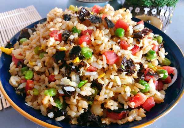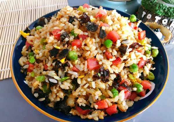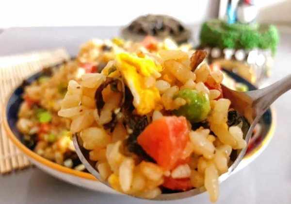 香喷喷的紫菜炒饭就做好了,颗颗分明,搭配丰富,补铁补钙又好吃