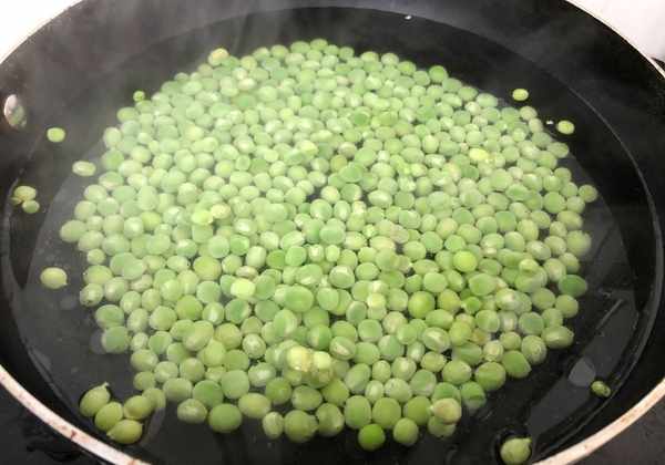 (1)锅中水开后放入2把豌豆焯水,放少许盐和食用油,这样颜色看起来更加翠绿