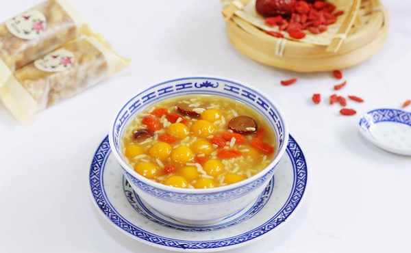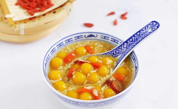 【烹饪食材】:枸杞子5g、南瓜120g、糯米粉100g、甜酒酿120g、古方红糖2块、玉米淀粉3g、红枣片5g、清水适量。