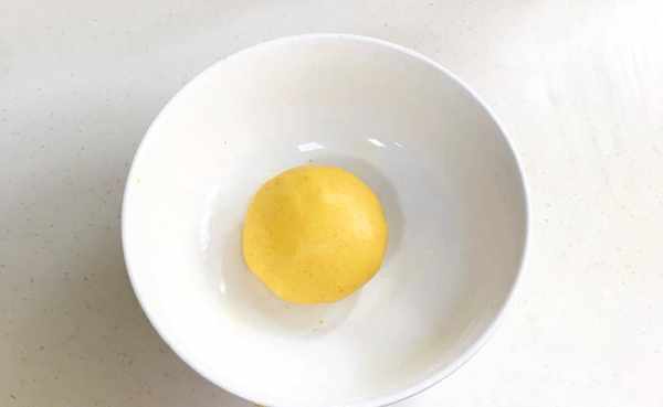 5、将南瓜泥和糯米粉混合均匀,然后用手揉成光滑的小面团。