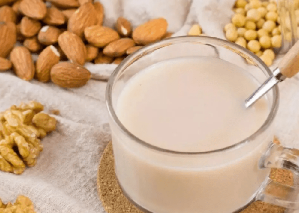 ③把打好的坚果豆浆倒入锅中,开大火煮至完全沸腾,倒入准备好的冰糖和牛奶,一边煮一边加热,直至在沸腾状态下保持两分钟,即可食用。