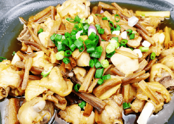就比如说黄花菜蒸鸡,黄花菜烧肉,白菜拌黄花菜等等。
