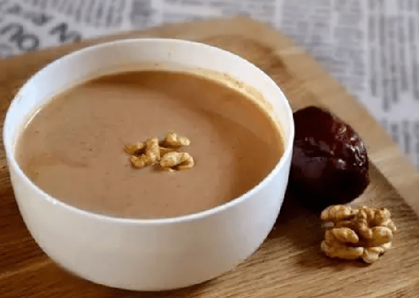 ③把核桃大枣糊倒入锅中,加入牛奶和冰糖,开中火炖煮八分钟就可以开吃了。