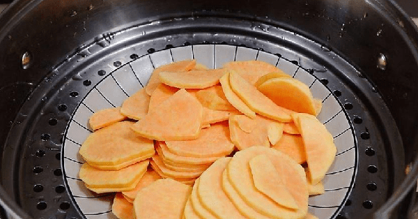 1、将红薯切成小块,放入蒸笼中蒸熟。