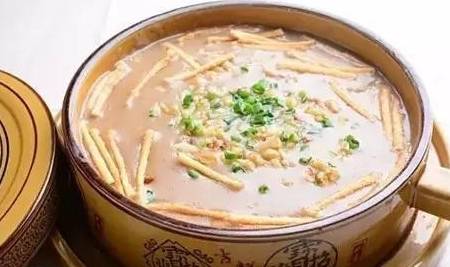 往锅里倒入黄豌豆面、玉米面和米粉,炒香后掺入适量鲜汤,并放入盐和生抽,搅熟后撒上香菜、馓子、花生碎、榨菜等,起锅装盘时,撒些葱花,即成。