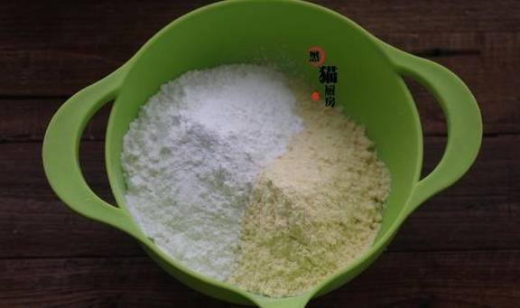 2.称量好上面提到的小米面和糯米粉,小米面尽量买一些细腻的,如果家里有破壁机或者料理机,也可以直接把小米打成细腻的粉状,用着是一样的,只要足够细腻,不要有太多颗粒就行。小米养胃,想不到还能把它用来做蛋糕的材料吧?嘿嘿。
