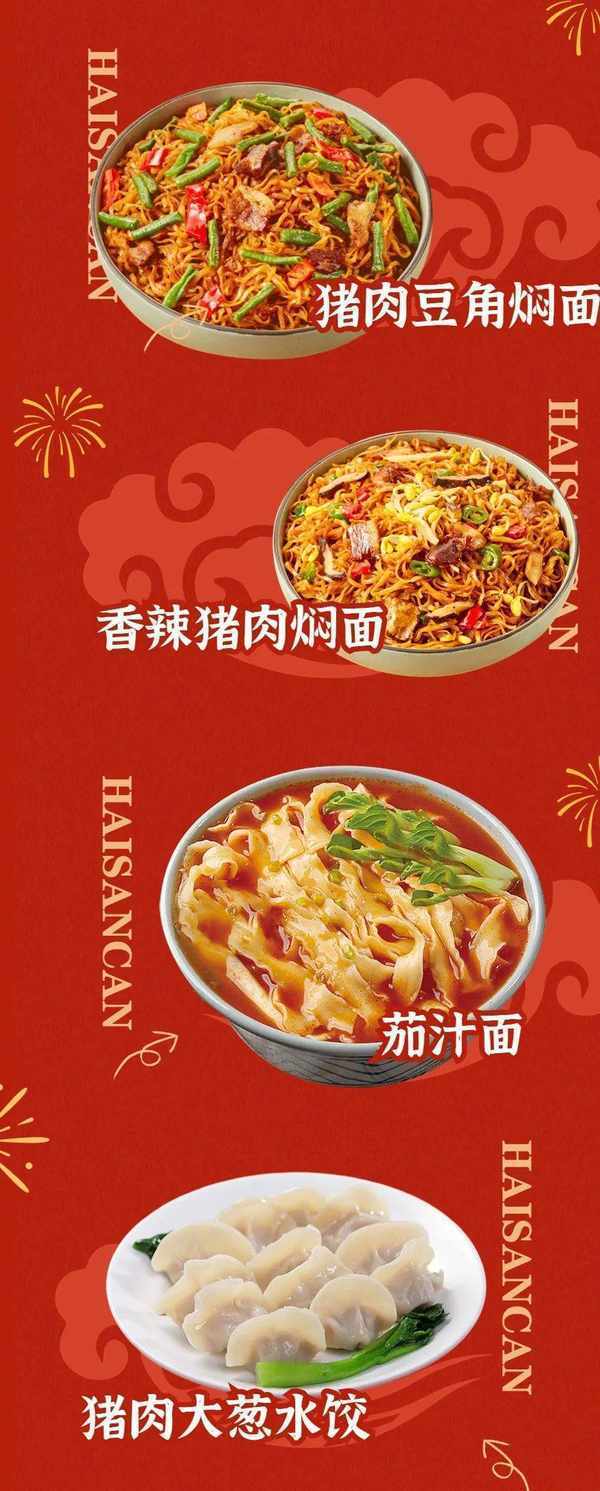 “嗨三餐”相较于传统餐馆现炒、现煮的模式,嗨三餐最大的亮点就是门店菜品全部预制。包子、饺子、面食、盖饭、糕点、西点、海鲜、小龙虾、梅菜扣肉等等都是速冻预制产品,店内无明火,丰富的菜品可以满足消费者一日三餐的不同口味需求。