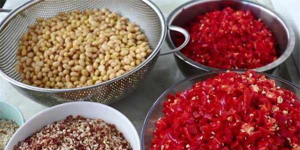 辣椒、黄豆、八角、食盐、食用油、花生、白芝麻、花椒、小茴香、桂皮、月桂叶、大葱、姜片、干黄酱、冰糖