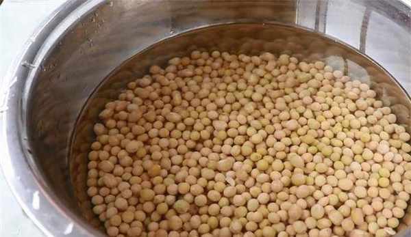 3、泡好后,将黄豆倒入锅中煮至熟透。加入两颗八角和两勺盐。煮熟后,将黄豆捞出沥干备用。