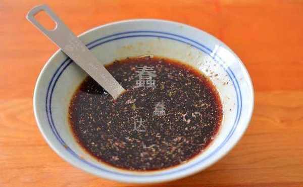 酱汁儿:生抽3勺,蚝油2勺,盐1勺,清水半碗,白胡椒粉适量,黑胡椒粉适量