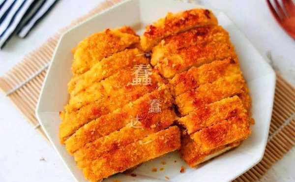 (9)将准备好的鸡排,裹上一层面包糠,放在锅中煎制,煎至两面金黄色就可以了。