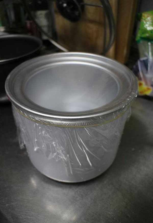 1.前一天,先清洁冰淇淋机内锅,记得要把水分擦拭干净保持锅壁光滑,若水珠凝结在锅壁,会让搅拌片无法搅拌。怕污染内锅,所以包上保鲜膜,用锅盖也不错。