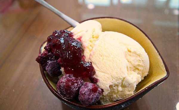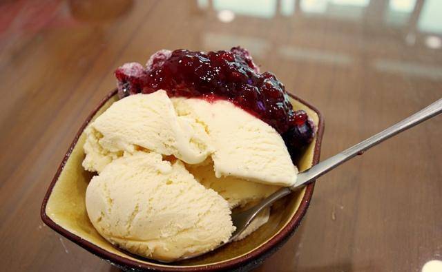 挖几球出来淋上莓果、果酱或意式咖啡,就超好吃的!不过,自己做冰淇淋比外面卖的冰淇淋融化还要快,我觉得应该是因为制程问题,不是小家庭能力所及。可以先将容器冰镇过,延缓一点融化速度,效果应该会好一点。