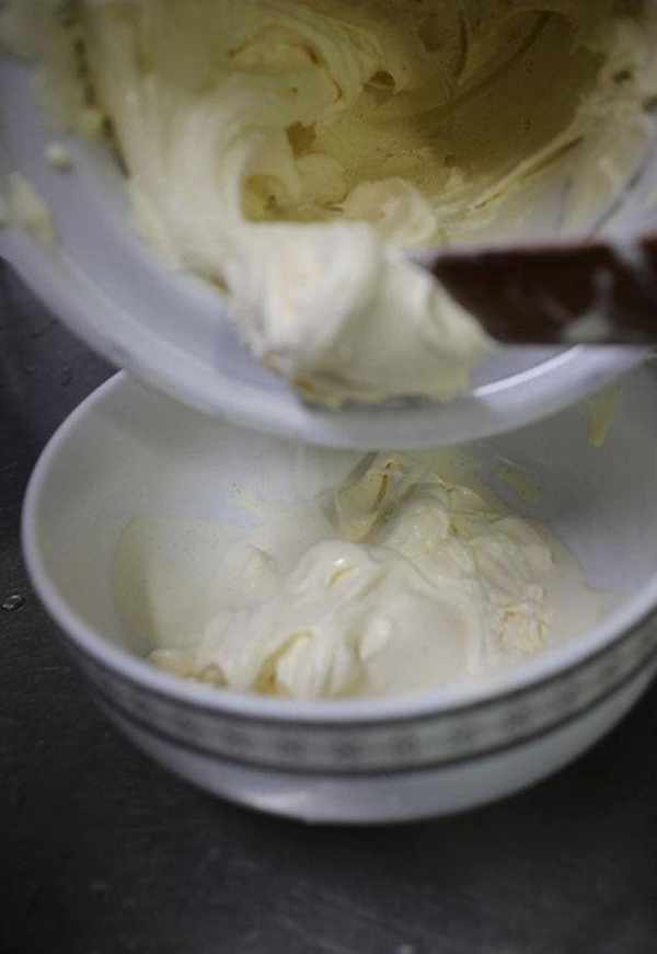 10.将蛋黄浆加入鲜奶油,搅拌均匀。