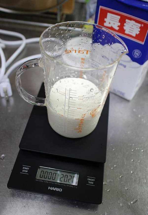 9.称200克的鲜奶油。