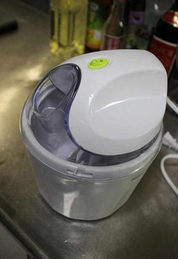 以往我做冰淇淋一直都是用搅拌器制作,要顾冰箱3小时,每半小时就得将冰淇淋拿出来搅一搅再冰回去。(吃个冰还真辛苦)