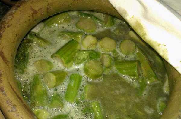 第二步:准备臭苋菜卤,闻起来是真的臭,但回味后居然有点香味,真可怕!这就是苋菜发酵后的神奇效果。