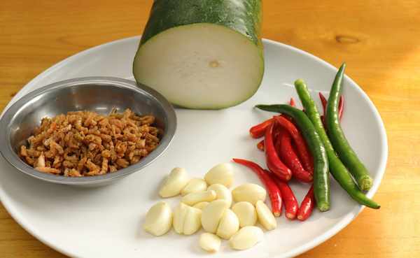 1.冬瓜去皮、去瓤、切成片,小米椒切成圈,青线椒也切成圈,再准备一把大蒜,先切碎,再剁成蒜末,然后把泡好的海米,控干水分备用。