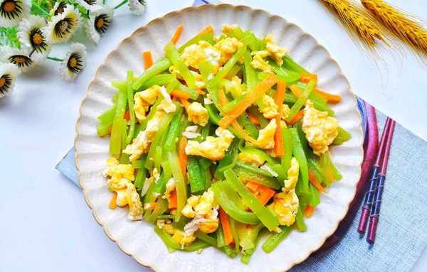 炒匀后倒入鸡蛋,加少许鸡精快速翻炒几下即可出锅。