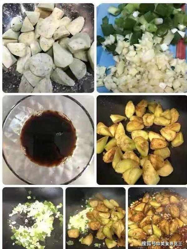 1、茄子最好选用长茄子,去皮后切成滚刀状,加淀粉拌匀备用;这样可以防止茄子变黑,大蒜剁成蒜末,香葱切葱花;