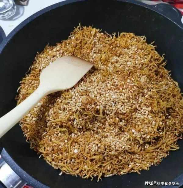 5、记得随时关注大米的颜色,炒制大米发黄,且姜丝变干或者变硬的时候,就可以关火离锅了;记得倒出来自然晾干,离火后的锅会有余温,若炒很了,余温足可以将米热出糊味!